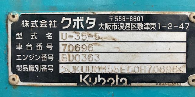 スペック | 標準バケット容量 (新JIS山積) 0,11 ゴムシュー300mm幅 ※ クレーン、 配管仕様 標準バケット幅(サイドカッタ含む/含まず)600mm 機械質量 3420Kg 機体寸法 全長 4665mm 全高 2350mm 全幅 1700mm 最小後端半径 850mm 最低地上高 290mm 掘削性能 最大掘削高さ mm 4955 4730 最大ダンプ高さ mm 3525 3320 最大掘削半径 mm 5265 最大掘削深さ mm 3135 タンク容量 燃料 40.0L クローラ 全長×幅 2100×300mm ※ 現地現状渡し 松江市宍道在庫 |